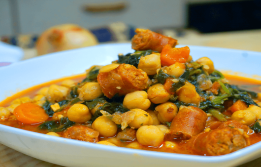 A csicseriborsó spenóttal egy népszerű étele a spanyol konyhának, melyet Sevillában készítenek a legízletesebben. Híres vegán alaprecept amit ha úgy