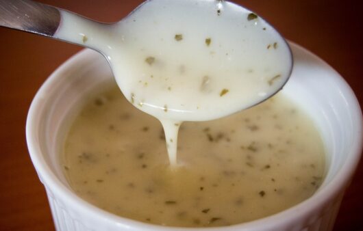 Velouté mártás, más néven fehér mártás. Majdnem teljesen megegyezik a Bechamel mártással, azonban a tej helyett csont-, vagy húsalaplevet használunk.